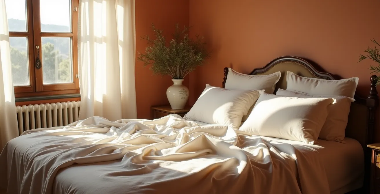 - Le fibre naturali come lino e cotone percalle regolano attivamente la temperatura corporea, un fattore essenziale per chi ha la pelle sensibile o suda di notte.